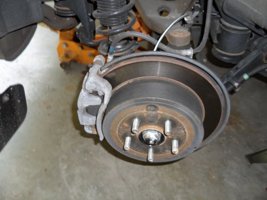 The hardest part of this is going to be figuring out where to start. Just break your lugs free and jack the car up completely off the ground and put it on jackstands. I started with the passenger front caliper and made my way around the car. Take all of your wheels off and get all your parts lined up and ready to go.