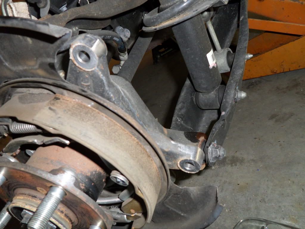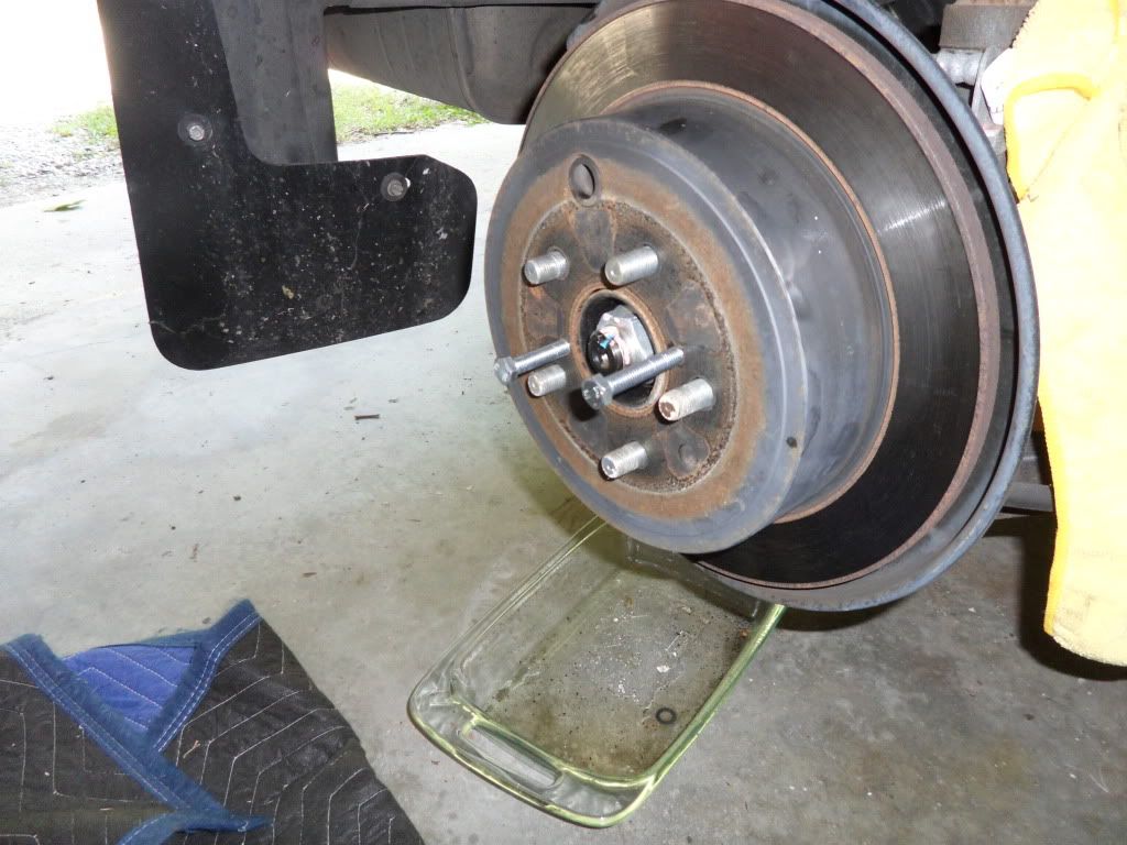 move onto the rear and do the same as the front. once you get the caliper free and off the rotor You will need two bolts that thread into the rotor to pull it off the hub. I forget what size they are but you can get them at any hardware store. your new rotor will be a vented rotor from a 2010+ legacy GT. It will fit in the dust shield. some guys say you need to trim it but I did not have to.